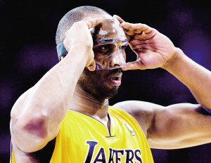 2月29日,湖人队球员科比在比赛中。当日,在NBA常规赛中,湖人队主场以104:85战胜森林狼队。由于科比在全明星赛中鼻骨骨折,本场出场的科比戴着防护面具进行比赛,并拿到全场最高的31分。 新华社发