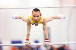 3月3日,休斯敦体操国际邀请赛在休斯敦乔治布朗会议中心继续进行。中国队选手杨胜超获得男子单杠冠军和个人全能亚军;李依婷获得女子自由体操冠军;李珊珊、张箐和张业琳子包揽女子高低杠前三名。 图为李珊珊在高低杠比赛中。新华社发