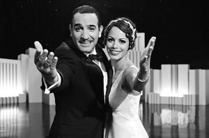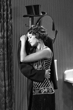 在今天的大银幕上,演员可以用声音表达他们的喜怒哀乐,但在默片时代,演员们只能用表情和肢体来表达一切,所以我们回顾那些经典默片总会觉得演员的表演有些过度夸张和做作,这或许在某些时候可以作为我们选择性批判早期电影的一个依据。但是,《艺术家》中演员的表演恰恰是生动完美地把握住了默片电影的表演特征,极为难得地再现了彼时演员的表演风貌,特别是让·杜雅尔丹那做作的男性潇洒和贝热尼丝·贝乔那夸张的女性情态,整合了1950之前好莱坞电影男女明星的所有标准特征,给人一种时光倒流画影缱绻的美好感。如果不是演员的到位表演,那么《艺术家》只能算一部现代演员表演的“黑白片”而不是“默片”,那些致敬和怀旧的成分会大打折扣。正因为如此,在《艺术家》中看让·杜雅尔丹和贝热尼丝·贝乔的惟妙惟肖的表演,等于是对默片电影的一次温情而完美的回顾。