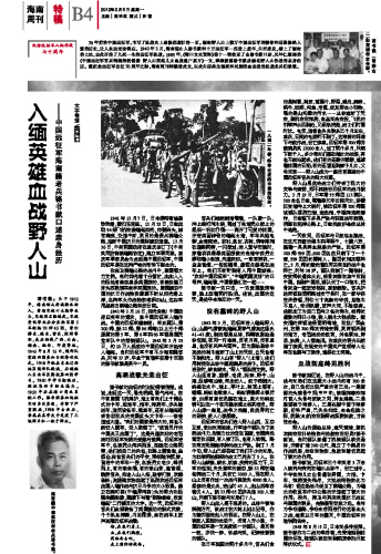 70年前的中国远征军,书写了抗战史上最惨烈悲壮的一页。缅甸野人山上数万中国远征军的骸骨和那段惨绝人寰的历史,让人永远无法淡忘。1942年2月,海南琼山人骆书猷和十万远征军一起登上战车,向西进发,踏上了缅甸的土地,由此开始了九死一生的远征军抗战。1995年,《海口文史资料》第十一辑收录了由骆书猷口述、吴坤仁整理的《中国远征军官兵利剑怒斩倭魔 野人山英雄儿女血战遗尸累万》一文,详细披露骆书猷赴缅北野人山作战的亲身经历。值纪念远征军出征70周年之际,海南周刊特摘登此文,以此向那些为国家和民族浴血奋战的抗战老兵们致敬。