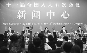 | 3月6日,财政部部长谢旭人等就“当前的财政政策和财政工作”等问题回答中外记者提问。 新华社记者 王鹏 摄 |