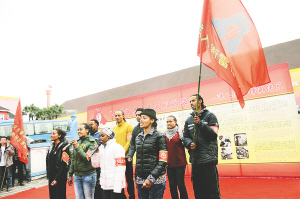 3月4日,9名“洋雷锋”们齐唱《学习雷锋好榜样》。 当日,重庆市洋人街景区开展雷锋月宣传活动。9名外籍员工作为景区首批“洋雷锋”正式上岗。他们将在工作中发挥语言优势,倡导文明旅游,帮助游客解决实际问题。 新华社记者 陈诚 摄