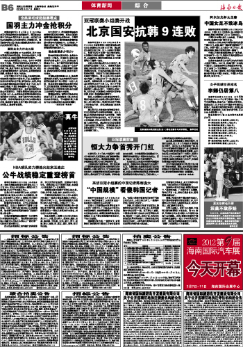 海南日报 体育新闻 014 2012-03-071 2012年03月07日 星期三