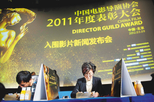 发布会现场由会长李少红公布了中国电影导演协会2011年度初评委员会推荐作品,包括《让子弹飞》、《非诚勿扰2》、《观音山》、《云下的日子》、《刀见笑》、《碧罗雪山》、《在一起》、《跟踪孔令学》、《最爱》、《郎在对门唱山歌》、《岁岁清明》、《孩子那些事儿》、《秋之白华》、《魁拔之十万火急》、《钢的琴》、《归途列车》、《蛋炒饭》、《李献计历险记》、《倭寇的踪迹》、《转山》、《Hello!树先生》、《失恋33天》、《太阳总在左边》、《这里,那里》24部作品入围。需要说明的是,这次评选的影片主要是内地导演的作品,所以,港台电影导演的影片暂不在考虑之列。而所有的电影都是主动报名的,因此不排除有部分电影没有报名,导致没有入围。