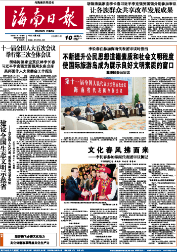 海南日报 头版 001 2012-03-101 2012年03月10日 星期六