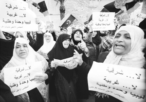 新华社的黎波里3月9日电(记者才扬)利比亚首都的黎波里和第二大城市班加西9日爆发大规模游行,抗议东部的昔兰尼加地区宣布自治。   的黎波里约3000名市民当日手举标语牌和旗帜在市中心烈士广场聚集,高喊着“不要东部,不要西部,只要统一的利比亚”的口号,反对联邦自治。同一天,在昔兰尼加地区的班加西,两万名市民冒着沙尘暴参加了游行,他们高呼“利比亚自由”等口号,呼吁国家团结。   利比亚班加西及周边地区城市委员会(相当于市政府)6日通过一项决议,宣布东部的昔兰尼加地区实行自治,并呼吁利比亚恢复实行伊德里斯王朝时期的联邦制。