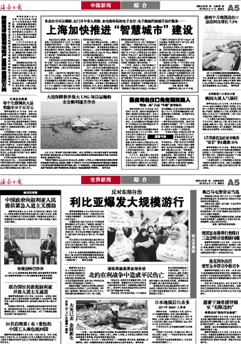 海南日报 中国新闻 综 合 005 2012-03-111 2012年03月11日 星期日