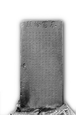| 海口市联桂坊王克义后裔保存的“奉宪给照”古碑。 |
