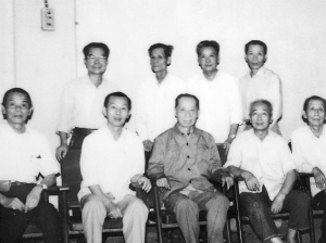 | 1988年10月,部分黄埔军校海南籍校友合影。后排右二为陈家鉴,前排左二为周学而。