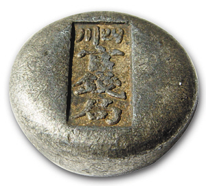 明清银锭还有官铸和私铸之分,官铸的银锭一般把重量铭文铸在侧面,而且每锭都有银局名,如“厘金局”、“官钱局”等,清代中后期各省铸造的官锭还要镌上省名,如“湖南厘金局”、“四川官钱局”等;私铸银锭铭文基本是私银钱号名称,如“兴盛昌、震远钱局”、“裕记汇号纹银”等等。两者的地位不同,其收藏价值也是无法相比的。