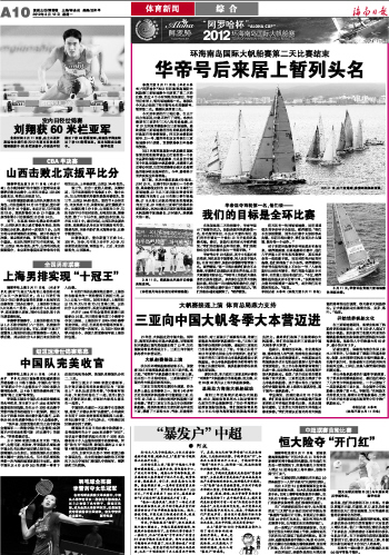 | 海南日报 体育新闻 010 2012-03-121 2012年03月12日 星期一 |