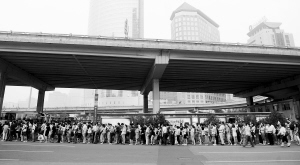| 两会期间,一则“北京上班族月收入七千伍百元没有安全感”的消息引发舆论关注和热议。图为北京上班族下班后在排队等候公共汽车。 新华社发(资料照片) |