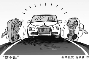 【背景事件】近期接连发生的“撞豪车”事件,让不少车主感叹“伤不起”。年初,温州一辆雅阁轿车撞上劳斯莱斯,雅阁车主负全责。事后,劳斯莱斯的维修费用锁定为35万元,而雅阁车主投保的第三者责任险最高赔偿限额只有20万元。除去保险公司赔付的16.2万元,其余18.8万元需雅阁车主自行承担。