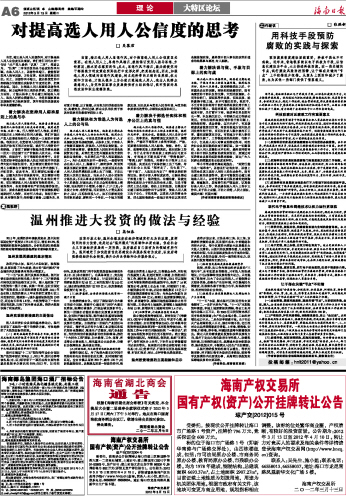 海南日报社新闻信息中心制作维护 地址:海南省海口市金盘路30号新闻大厦 发行部:0898-66810999 广告部:0898-66810888 [