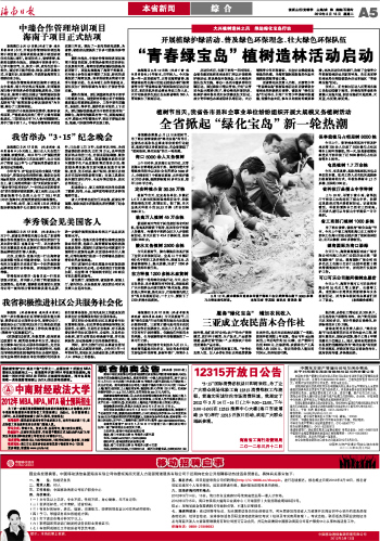 海南日报 本省新闻 005 2012-03-131 2012年03月13日 星期二
