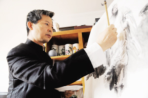 | 13日,以画孔子闻名的“孔子画派”代表画家郭德福在沈阳创绘《孔子打假》历史专题组画。 新华社发 |