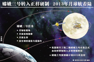 新华社北京3月13日电(余晓洁 蔡金曼)记者13日从国防科工局获悉,经探月工程重大专项领导小组会议审议,我国探月工程二期嫦娥三号任务正式由初样研制转入正样研制阶段。嫦娥三号探测器计划2013年发射,进行月球软着陆探测与月面巡视勘察。
