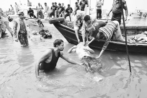 3月14日,在孟加拉国首都达卡南部蒙希甘杰县附近的梅克纳河,营救人员在事故地点打捞出一具尸体。据介绍,13日凌晨发生的梅克纳河沉船事故死亡人数已升至112人。 新华社发