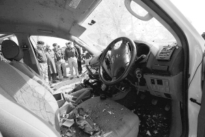 3月15日在巴基斯坦西北部城市白沙瓦的爆炸地点拍摄的受损车辆。 巴基斯坦警方15日称,巴基斯坦西北部城市白沙瓦当天上午发生自杀式炸弹袭击事件,造成至少3名警察死亡、一名警察受伤,袭击者本人当场身亡。 新华社发