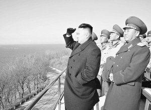 这张朝鲜中央通讯社3月15日提供的照片显示,朝鲜最高领导人金正恩(左)近日指导了朝鲜人民军陆海空三军联合打击训练。 新华社/朝中社