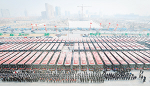 3月15日,天津即将投入运营的新公交车集体亮相。 首批500辆12米长新型公交车将服役于全市14条骨干线路。作为今年的20项民心工程之一,该市将更新、新增公交车2000辆。新华社发
