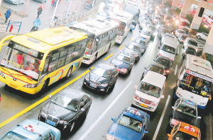 | 上海延安路上机动车密集(资料图片)。 新华社发 |