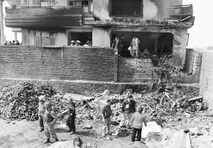 3月16日,在阿富汗首都喀布尔,一名土耳其士兵(前左二)和阿富汗人在直升机坠毁地点附近工作。 阿富汗首都喀布尔当天发生一起直升机坠毁事故,造成至少12人死亡、多人受伤。 新华社/路透