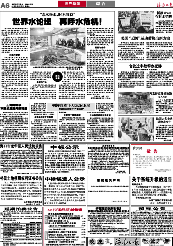 海南日报 世界新闻 006 2012-03-171 2012年03月17日 星期六