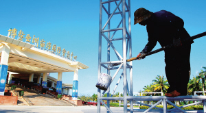 博鳌 紧锣密鼓 备战年会 博鳌亚洲论坛2012年年会将于4月1日至3日在博鳌召开,各项准备工作正在有条不紊地推进。 图为3月17日博鳌亚洲论坛国际会议中心,工人对部分设施进行升级改造、粉刷装修,以崭新的面貌迎接出席论坛年会的各界嘉宾。 本报记者 李英挺 特约记者 王仪 摄