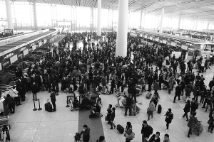 | 3月17日10时30分许,在北京首都机场T3航站楼,乘客在等待登机。