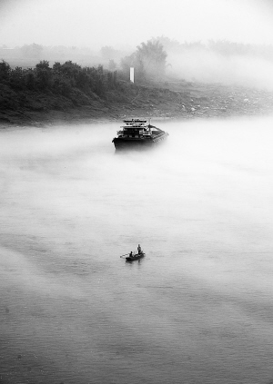 | 连日来,广西部分地区出现大雾天气。3月17日,广西桂平市出现平流雾景观,浔江河畔笼罩在一片云山雾海之中。 新华社发 |