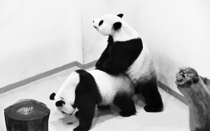 动物园16日晚上让“团团”和“圆圆”进入洞房,结果“团团”和好久没接触的青梅竹马“圆圆”一见面,高兴地抱着玩,玩到“圆圆”失去耐性,动物园为了不错过黄金时间,决定17日为“圆圆”做人工授精。