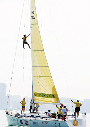 环赛段是本次环岛帆船赛最后一个赛段,全长约210海里,8支船队分环岛A组和环岛B组进行比赛,环岛A组亚派号已稳获冠军,环岛B组最有希望夺冠的船队是华帝号和京京号。全部比赛结束后,参加环岛拉力赛的8支船队还将进行总排名,目前亚派号与京京号是总冠军的大热门。