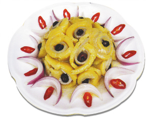 2011年底,中国热带农业科学院编撰出版的《中国木薯食谱》,不仅成为国内首部木薯食谱,更填补了国际上木薯食品无文无谱的空白。翻开这本汇集88种木薯烹饪技法的食谱,食用型木薯新品种“华南9号”闪耀出的黄金光泽首先会撩拨起人们品尝的欲望,经过蒸、炸、煎、炒、烩、红烧、糖醋、汤羹、冷盘等12大类烹饪技法的锻造,一块木薯入口,你会感到它正裹挟源自故土巴西的热情动力,在舌尖释放出绚丽新香。