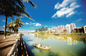 →海口打造最精最美省会城市,今年进一步加快老城区改建力度,成效显著。图为3月18日,改造后的海甸溪北岸为海口增添了一道亮丽的风景线。 本报记者 李幸璜 摄