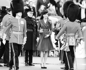3月17日,在英国奥尔德肖特军事基地,英国剑桥公爵夫人、威廉王子的妻子凯特王妃将三叶草赠予爱尔兰近卫军成员。 当日是爱尔兰传统的圣帕特里克节,凯特王妃在英国奥尔德肖特军事基地看望爱尔兰近卫军成员。 新华社/法新