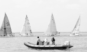 | 环岛大帆赛参赛帆船准备绕过起点标。 本报记者 宋国强 摄 |