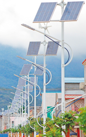 3月20日,经过半年改造,陵水黎族自治县本号镇街道两旁新安装环保、低碳、节能的“风光互补”路灯替代老式路灯,空中架设的各类线缆全部“下沉式入地”,小乡镇有了大变化。 本报记者 李英挺 通讯员 黄艳艳 摄