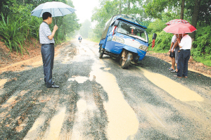 | 从龙湖镇居丁往蓬莱镇路段的道路,每逢下雨便泥泞不堪。 本报记者 张杰 摄 |