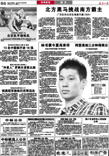 海南日报 体育新闻综合 014 2012-03-211 2012年03月21日 星期三
