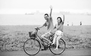 | 一对情侣在海口西海岸骑单车休闲。椰城的美丽还有很多,需要挖掘和开发。 (资料照片) |