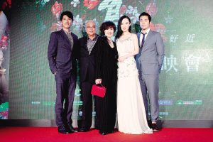 3月21日,演员蓝正龙、曾江、归亚蕾、霍思燕、张孝全(从左至右)在电影《饮食男女2》首映会上合影。 当日,由曹瑞原执导的电影《饮食男女2:好远又好近》在台北市喜满客影城举行首映会,主演蓝正龙、张孝全、霍思燕、曾江、归亚蕾到场助阵。该片将于3月23日在台湾上映。 新华社发