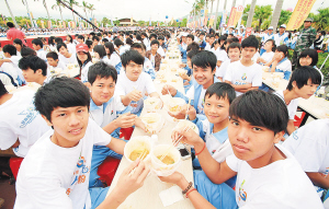 | 三月二十四日,陵水黎族自治县“万人同吃陵水酸粉”活动,创造了吉尼斯世界纪录。 本报记者 张杰 摄