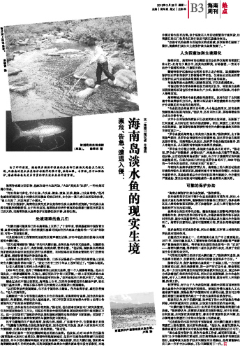 “可惜现在海南已经找不到大鳞白鲢了。”陈湘粦叹息说,淡水鱼类日渐减少,会影响到人类的可持续发展的多个方面。”