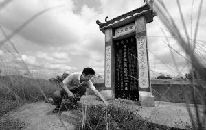 由小儿子周启儒带领,记者一行来到周运南的墓前。一块石碑,简要叙述了周运南的生平,后面三座坟,中间躺着的是周运南,右手边陈鸭高的坟明显要比另两个坟大很多,周启儒说这是出于风水的考虑,不过这也算是对饱经沧桑的陈氏一点告慰吧。