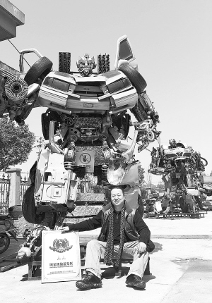 这个位于浙江省嘉兴市一座旧厂房内,建筑面积1万多平方米的“铁哥们”环保钢雕机器人艺术主题公园于3月20日通过国家2A级景区评审组认证并正式对外开放。公园中展出的十二生肖、京剧脸谱、登月旅行等10多个主题场景共600多件钢雕作品,都是50岁的朱克峰带领着他的“铁哥们”环保钢雕艺术团队成员用废旧汽车、齿轮、钢板、机床部件等各类金属件制作而成。从10多厘米到4、5米高的机器人,从国外的机甲战士到本土的钟馗,大小不一、形态各异。