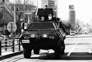 | 3月26日,警察在韩国首都首尔街头巡逻。 新华社发(朴真熙摄) |
