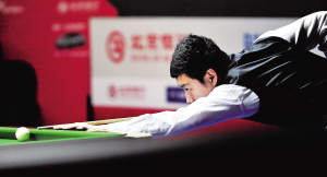 | 3月26日,中国选手李行在世界斯诺克中国公开赛比赛中。 新华社发 |