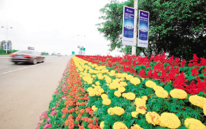 3月26日,数万盆鲜花扮靓琼海街头及东屿岛周边道路,喜迎年会。 本报记者 张杰 摄