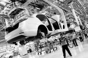 | 海马汽车生产车间里,工人们正在组装汽车。